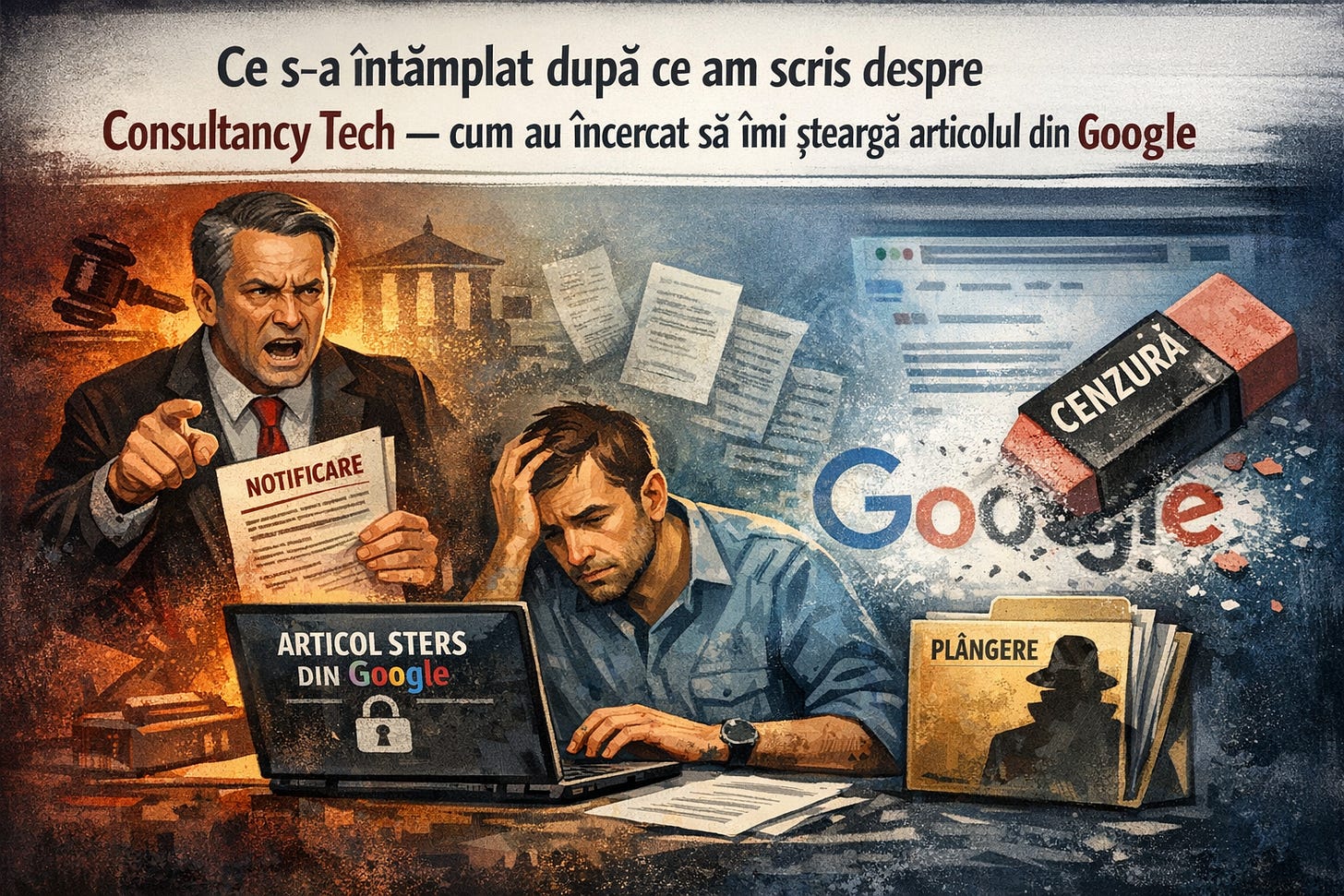 Ce s-a întâmplat după ce am scris despre Consultancy Tech — cum au încercat să îmi șteargă articolul din Google
